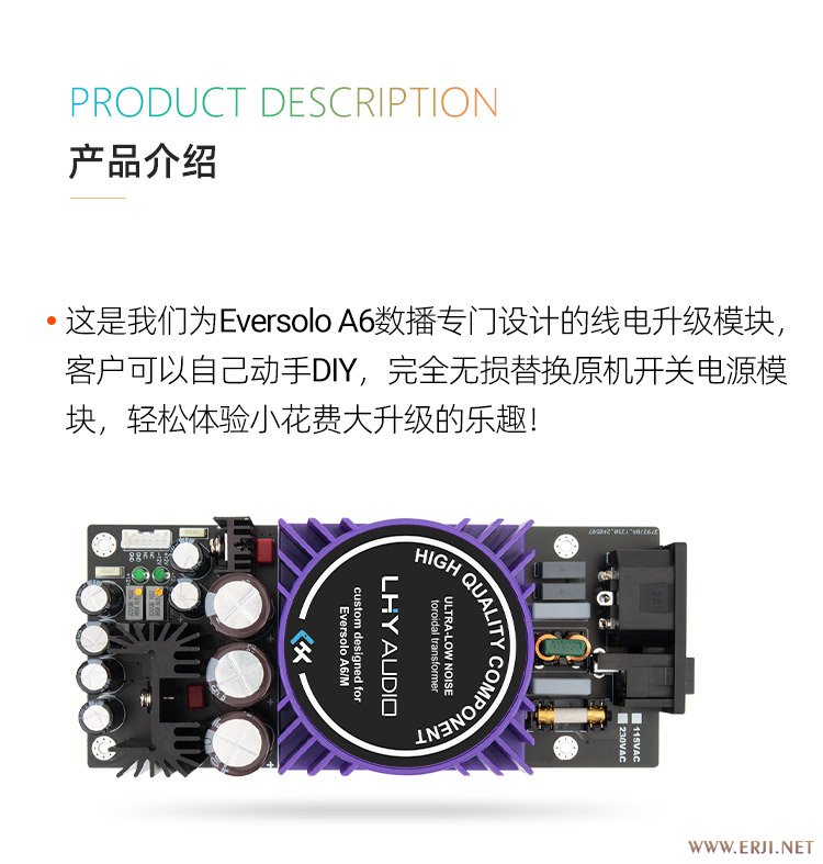• 相比开关电源,这专门为eversolo a6定制的线性电源用料更发烧,工作更稳定。